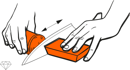 Gire a faca em 180° e repita e repita o processo de afiação com o Disco de Diamante 400# para que ambos os lados fiquem afiados mesmo.