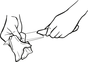 Após afiar, limpe a faca com um pano de limpeza. Você vai notar a poeira abrasiva escura que o disco de diamante criou. Este é um sinal de que você alcançou um resultado efetivo com o Canth.